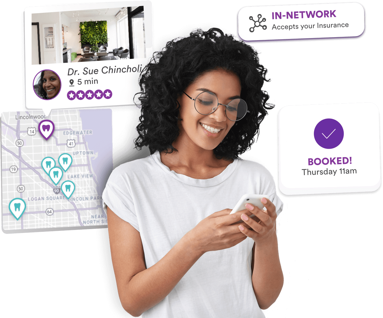 Our wide network ensures that you’ll find a dentist nearby with availability that works with your schedule.